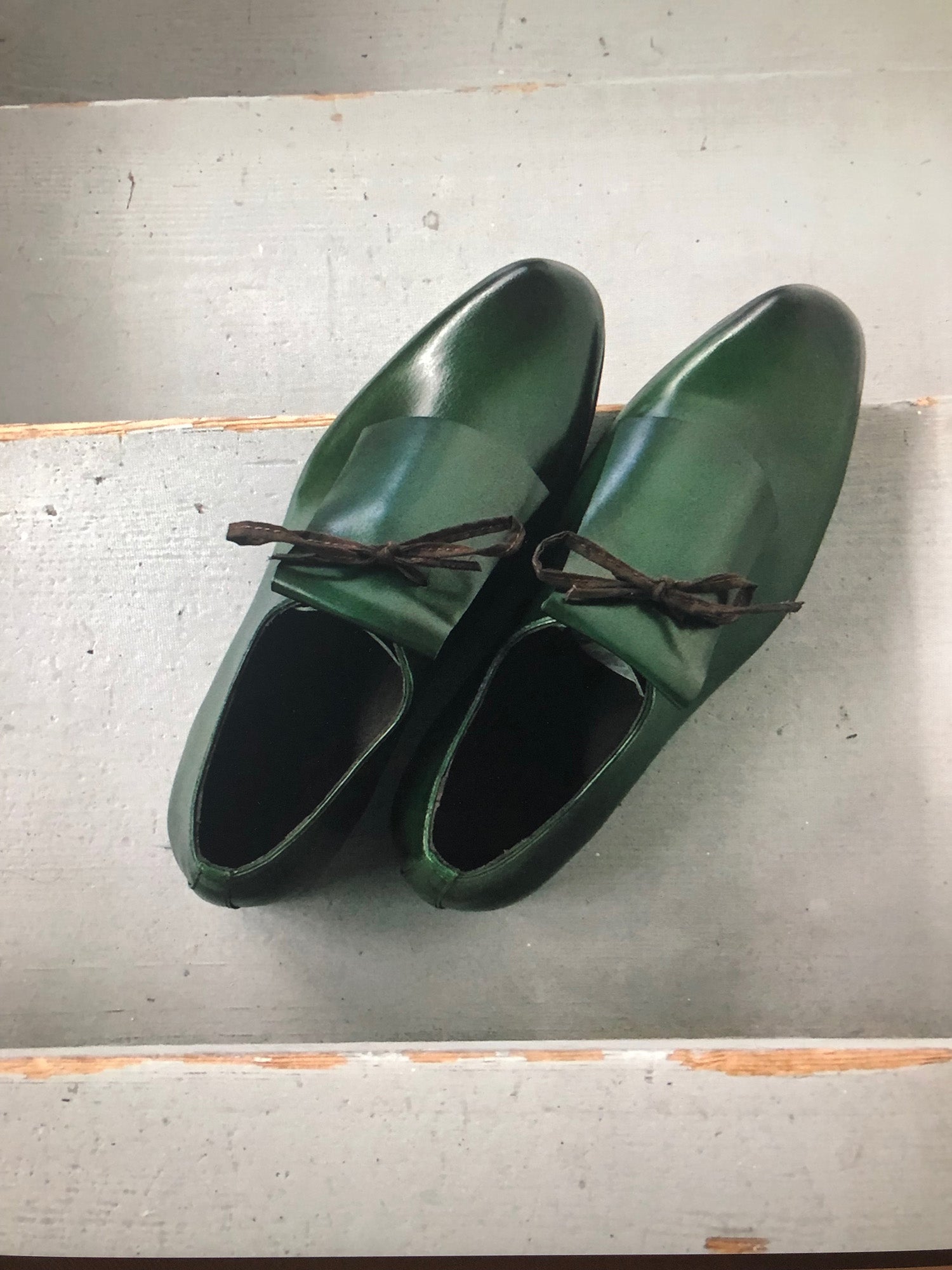 This shoe is made from one piece of leather – meaning there are no seams on the upper. Some consider this style to be the most difficult of shoes to make. We love it because it shows off the patina and finishes that we apply to the leather. A very elegant and beautiful shoe.