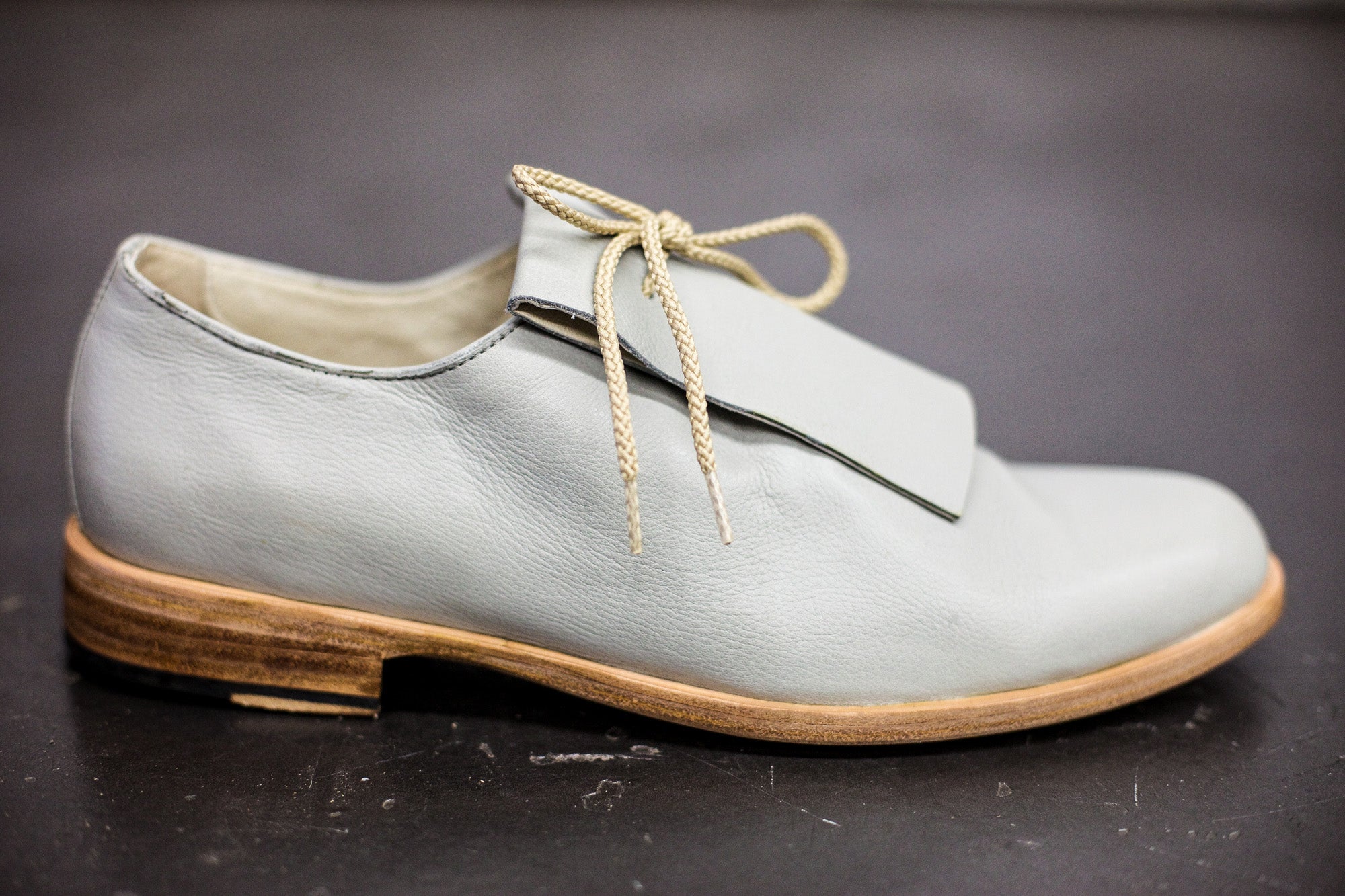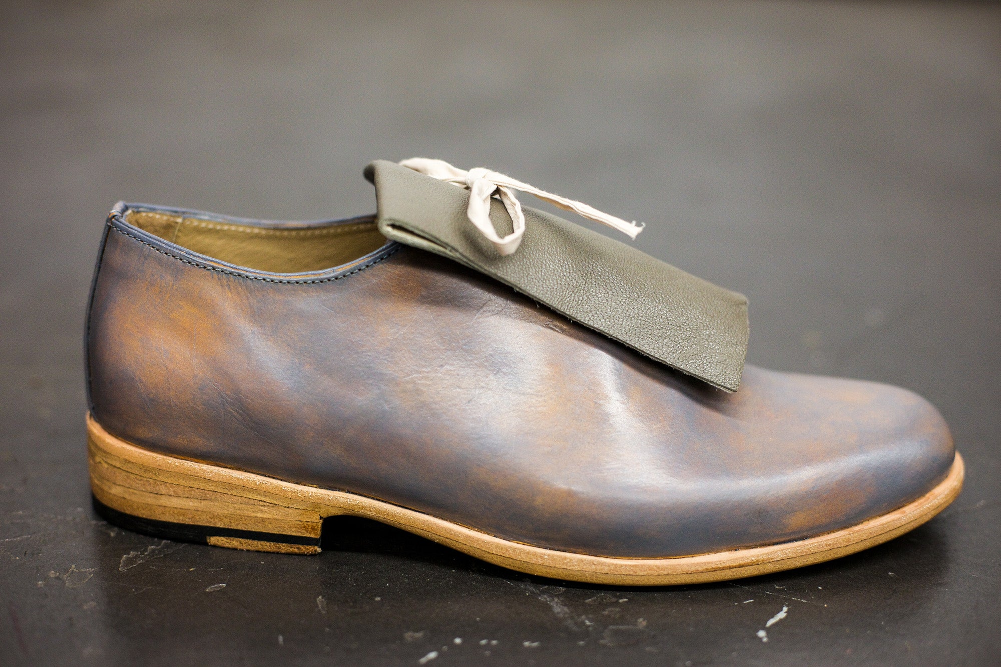 Each pair is patiently hand-lasted, or massaged, onto the mold of the shoe with some leathers requiring up to ten days to properly dry and take final shape. The "last" is the giver of shape, silhouette, and soul.